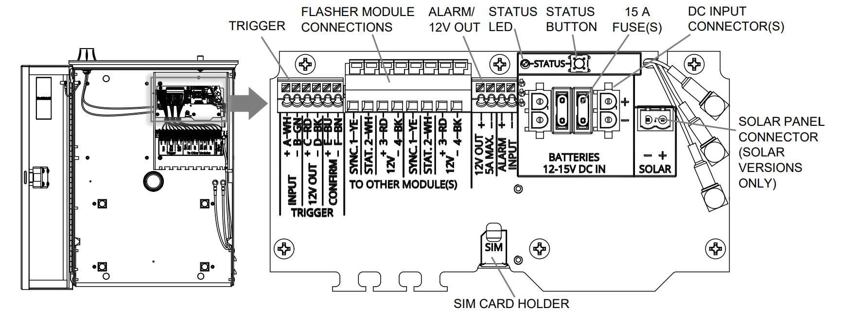 BUTTON (+/-): The iNX accepts 7-32 VDC across button terminals. When the PBS is powered and the physical button is pressed, the voltage will drop to ~0VDC. This is a contact closure connection that signals the RRFB controller to activate the warning lights.